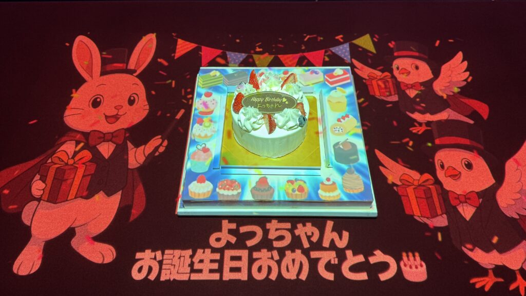 何もなかったテーブルにバースデーケーキが出現し、会場はさらに盛り上がります。