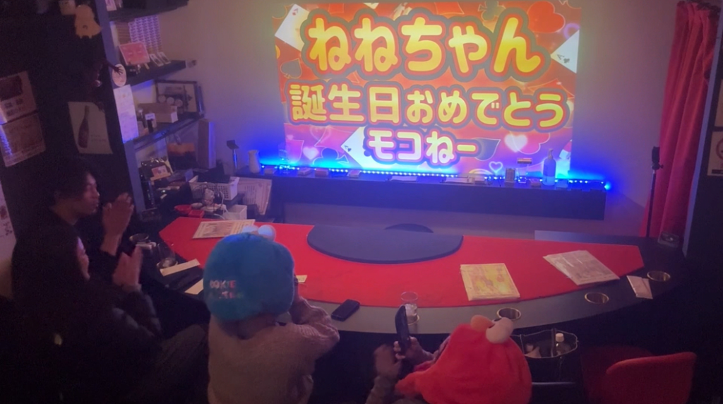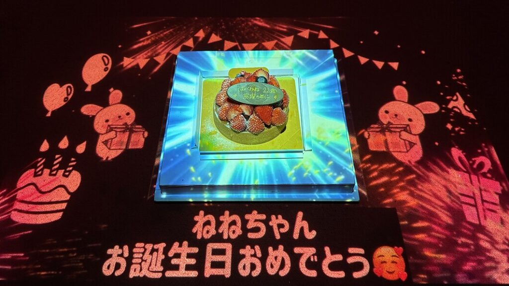 スクリーンには「お誕生日おめでとう」のメッセージとともに、華やかな映像演出が映し出され、