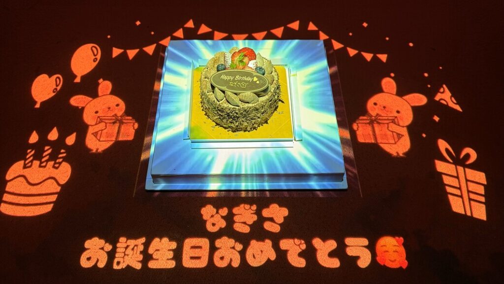「HAPPY BIRTHDAY なぎさ」のメッセージが大きく映し出されました。