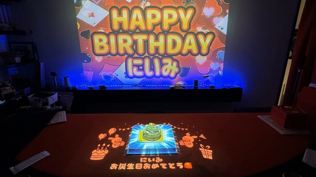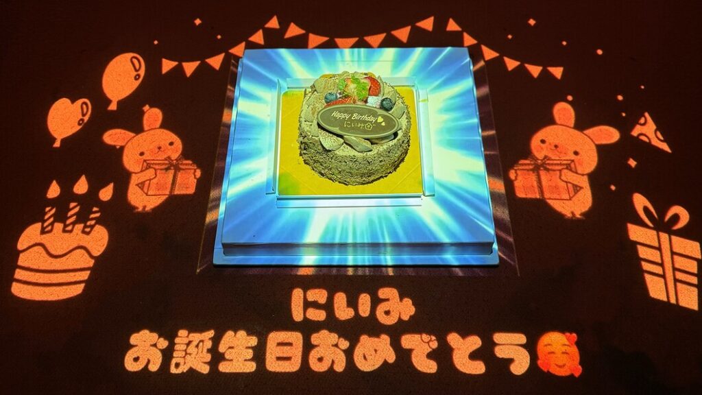 「HAPPY BIRTHDAY にいみ」のメッセージが大きく映し出されました。