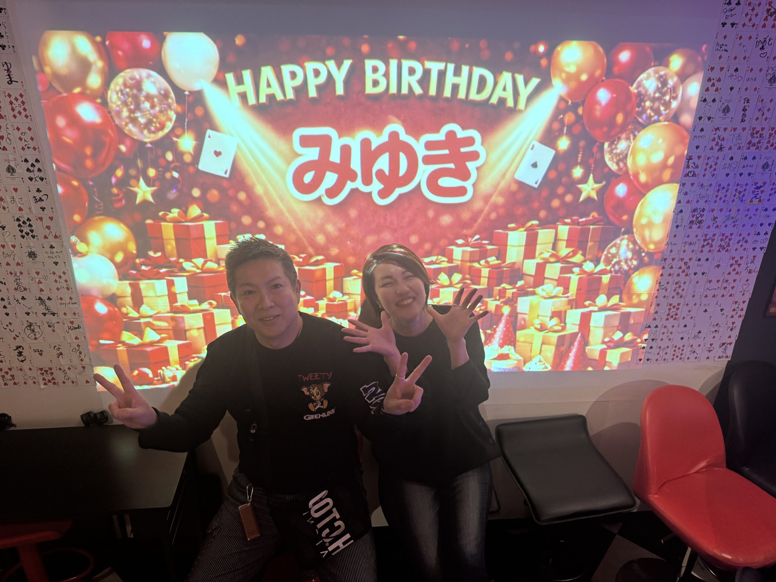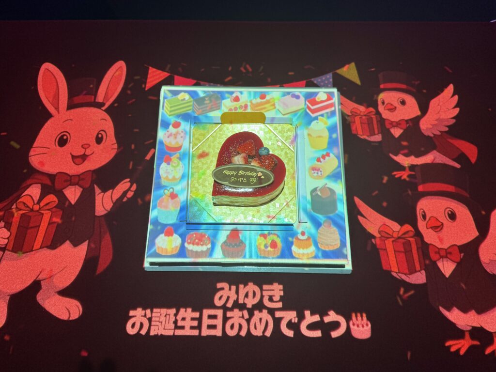 ショーの途中、何気ない流れから突然スクリーンに「HAPPY BIRTHDAY みゆき」のメッセージが表示。