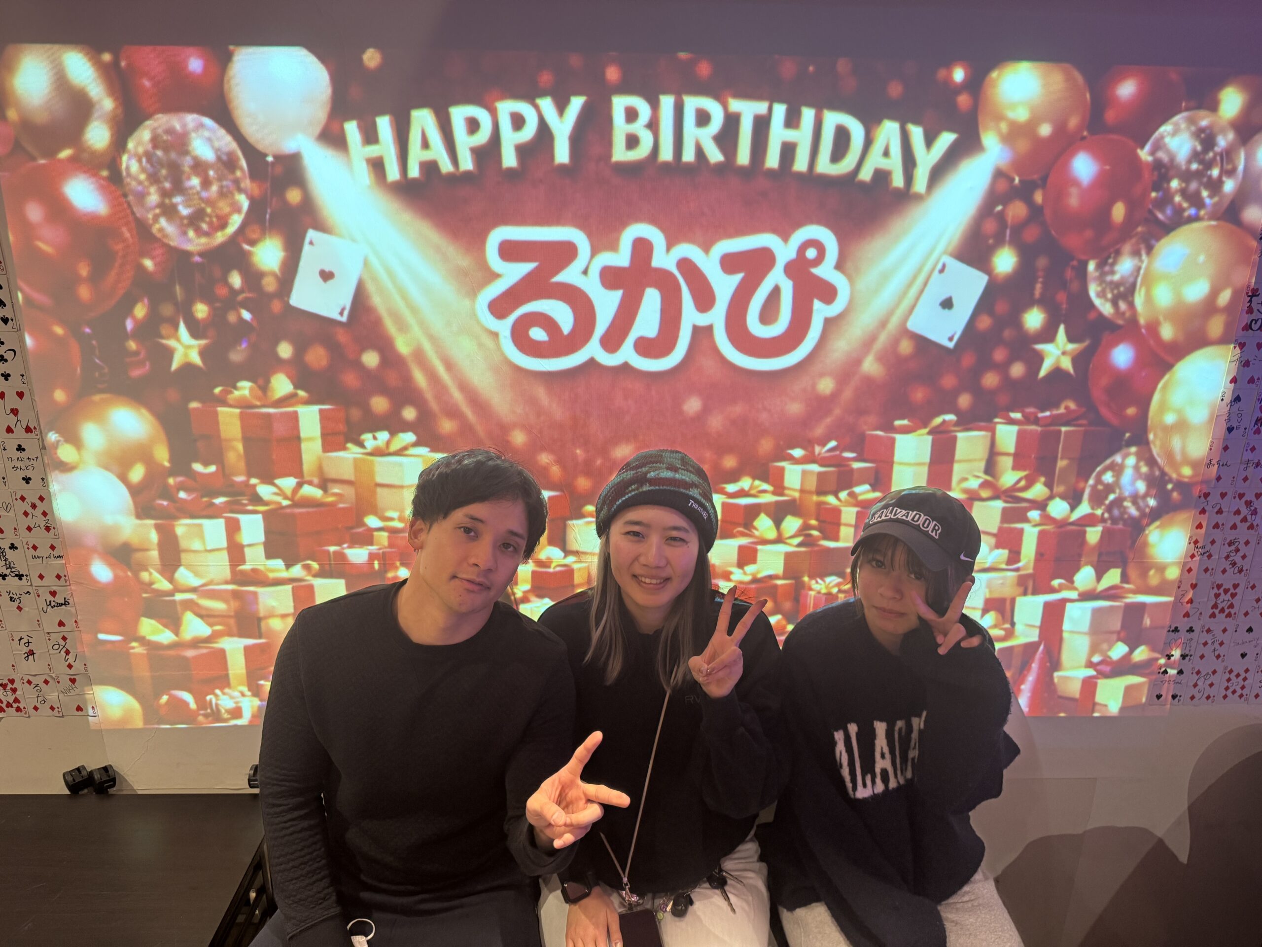 マジックショーの終盤、突然スクリーンに「HAPPY BIRTHDAY るかぴ」の文字が登場!