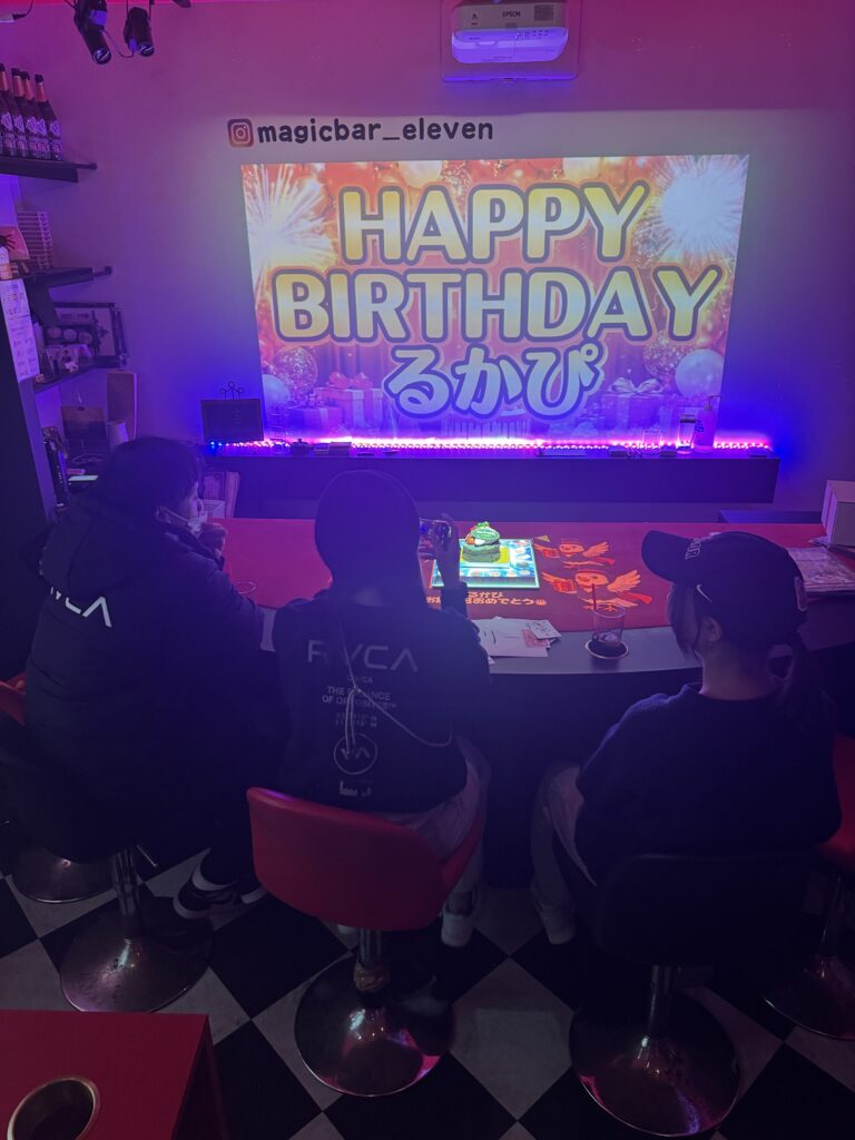 🎂 マジックバーイレブンの誕生日サプライズは、お名前入り演出・マジック・プロジェクションマッピングを組み合わせた、世界に一つのバースデー体験です!