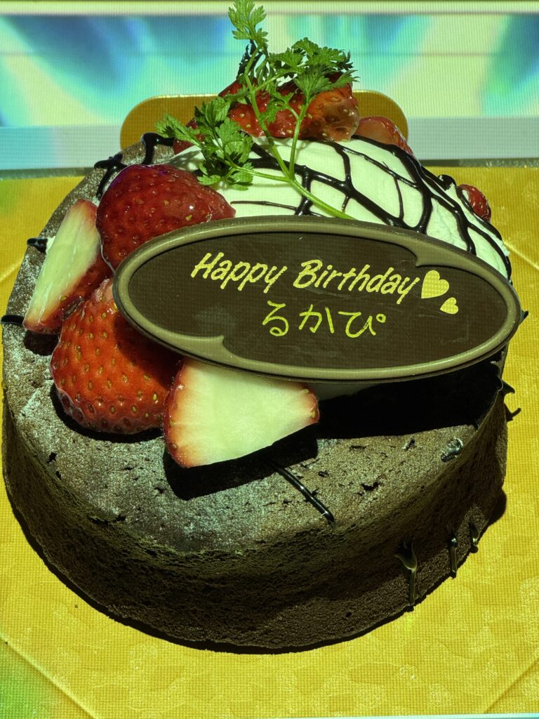 チョコプレートには「Happy Birthday るかぴ」のメッセージ入り💛